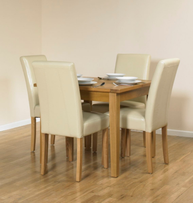 A traditional dining table crafted using selected timber, The reciprocal extending mechanism ensures Light oak finish table with 4 Dakota faux leather chairs. Chairs available in Chocolate Brown, Cream, and Red. AS12/4 ... Fetch Doc